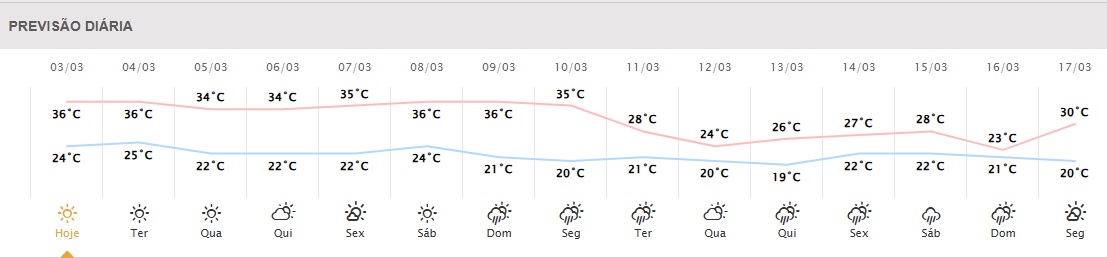 Para quem não aguenta mais esta onda de calor, a novidade é que ela começará a deixar a cidade no dia 11 de março, com máxima prevista de 28 graus, caindo para os 24 graus no dia 12 de março, segundo previsão do Simepar.