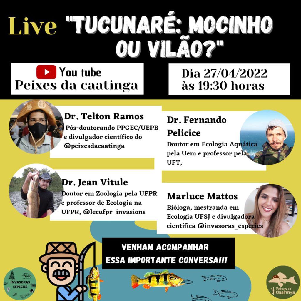 Ontem (27), quatro renomados pesquisadores brasileiros, que estudam a inserção da espécie de peixe tucunaré em ambientes onde eles não existiam, fizeram uma live para relatar o que aconteceu com as espécies nativas desses ambientes, depois que passaram a conviver com o intruso.