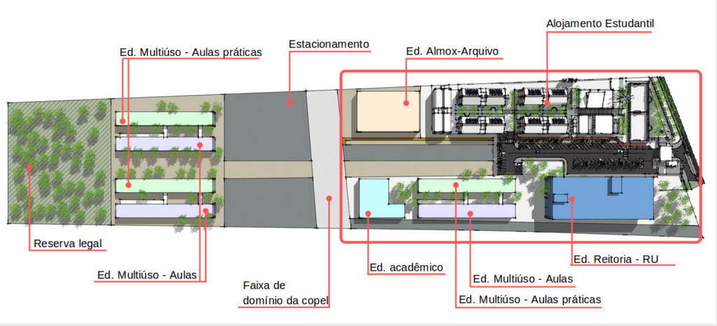 O Bloco de Aulas é a primeira etapa a ser executada do Plano Inicial de Edificações, lançado pela UNILA no segundo semestre. Também estão previstos blocos para aulas práticas, almoxarifado, Reitoria e restaurante universitário, que dependerão de licitações posteriores.