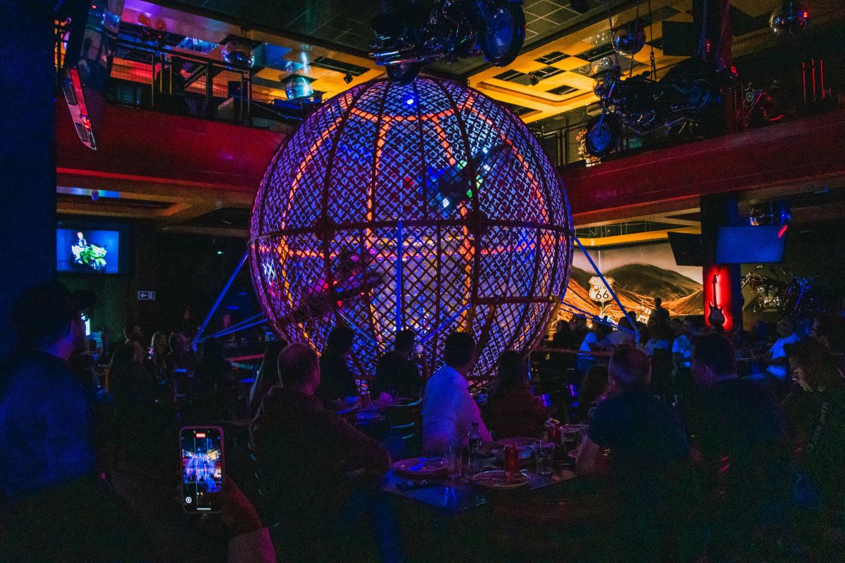 Desde a estreia, mais de 50 mil pessoas já prestigiaram a atração, que acontece dentro da esfera de aço de 4,6 metros de diâmetro, onde duas motocicletas realizam manobras sincronizadas. E graças a ela, o Dreams Motor Show ganhou espaço na história como o primeiro bar e restaurante do mundo a abrigar um Globo da Morte com apresentações diárias.