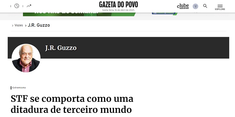 O texto baixo é um trecho da coluna do jornalista J.R. Guzzo, publicada ontem (15) no jornal Gazeta do Povo, cuja integra pode ser lida se vocês, leitoras e leitores do Não Viu?, clicarem aqui.