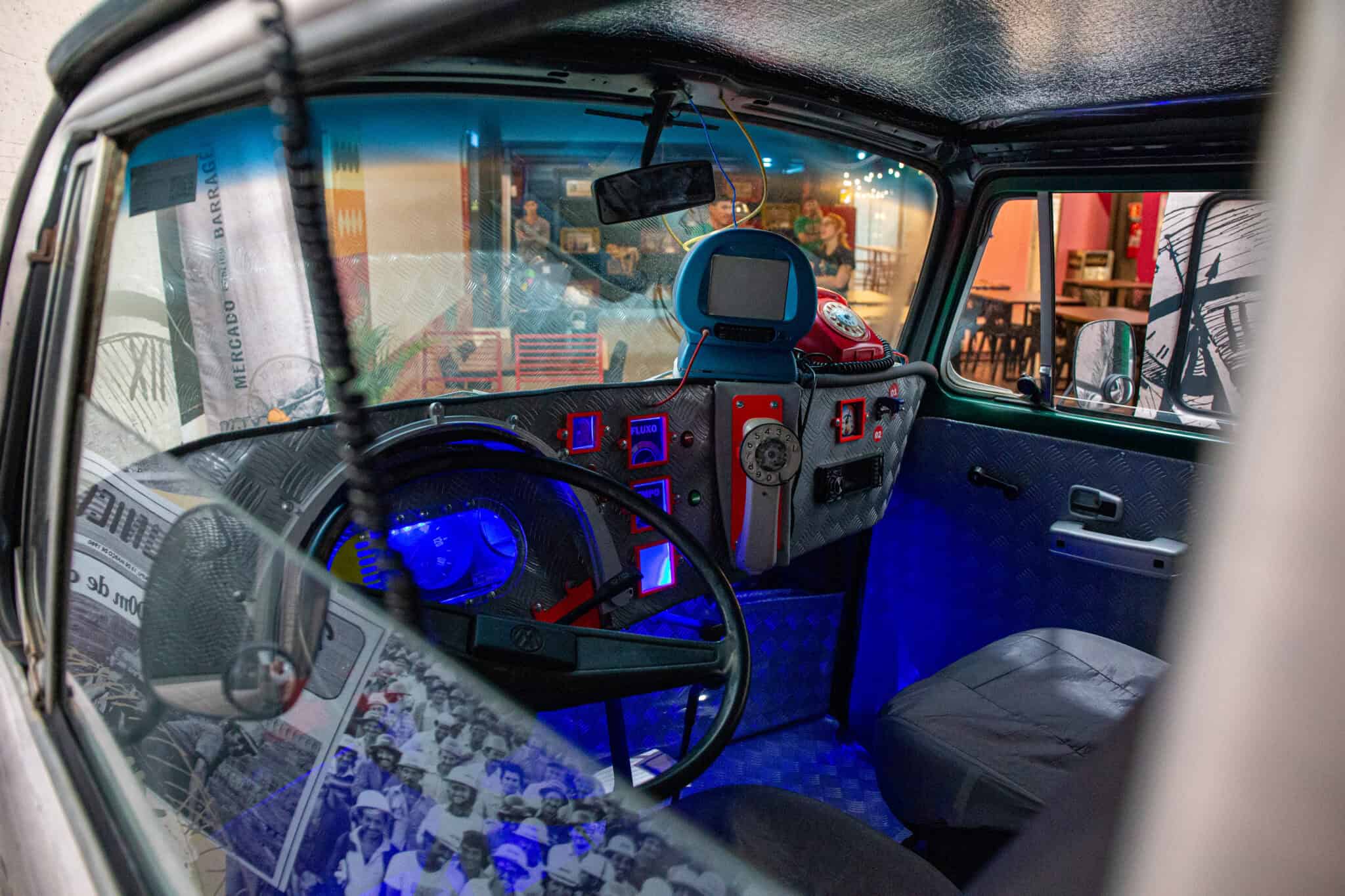 Instalada dentro do Mercado Público, ao lado do palco interno, a Kombi cenográfica funciona como uma cápsula do tempo.
