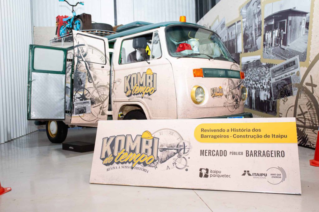 A escolha da Kombi como “túnel do tempo” faz referência a um dos principais meios de transporte utilizados à época pelos próprios barrageiros, reforçando o vínculo da atração com a memória da construção de Itaipu.