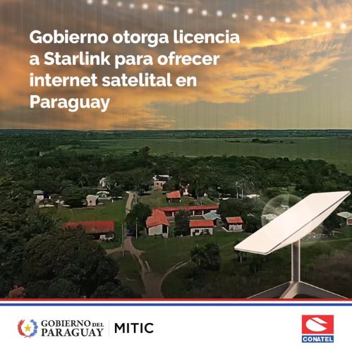 A Comissão Nacional de Telecomunicações (Conatel) concedeu à empresa Starlink a licença para prestar o Serviço de Transmissão de Dados e Acesso à Internet no Paraguai. Esta medida faz parte da intenção do governo de conectar todas as regiões do Paraguai, incluindo as áreas mais remotas, com serviços de Internet de banda larga.