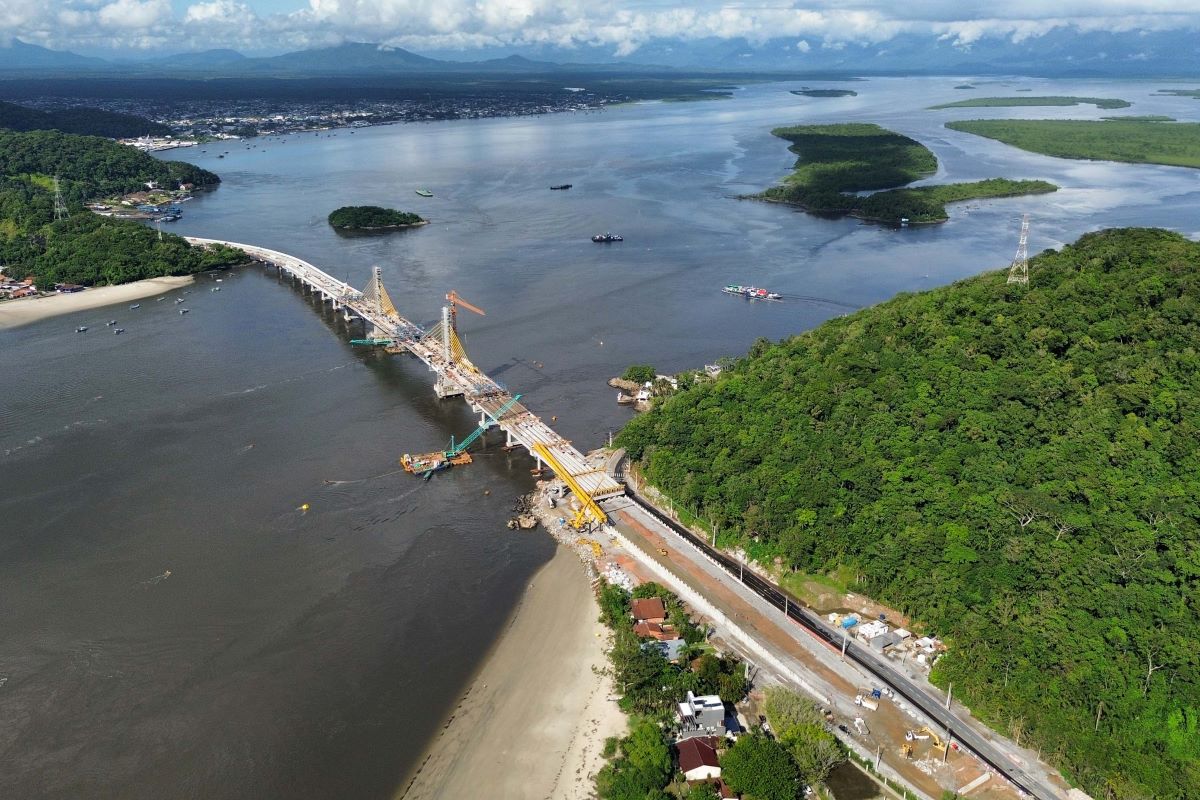 A construção da nova ponte que liga as cidades de Matinhos e Guaratuba, no litoral paranaense, alcançou 91% de execução em janeiro de 2026. O avanço expressivo foi registrado principalmente no trecho estaiado, que já soma 284 metros dos 320 metros previstos.