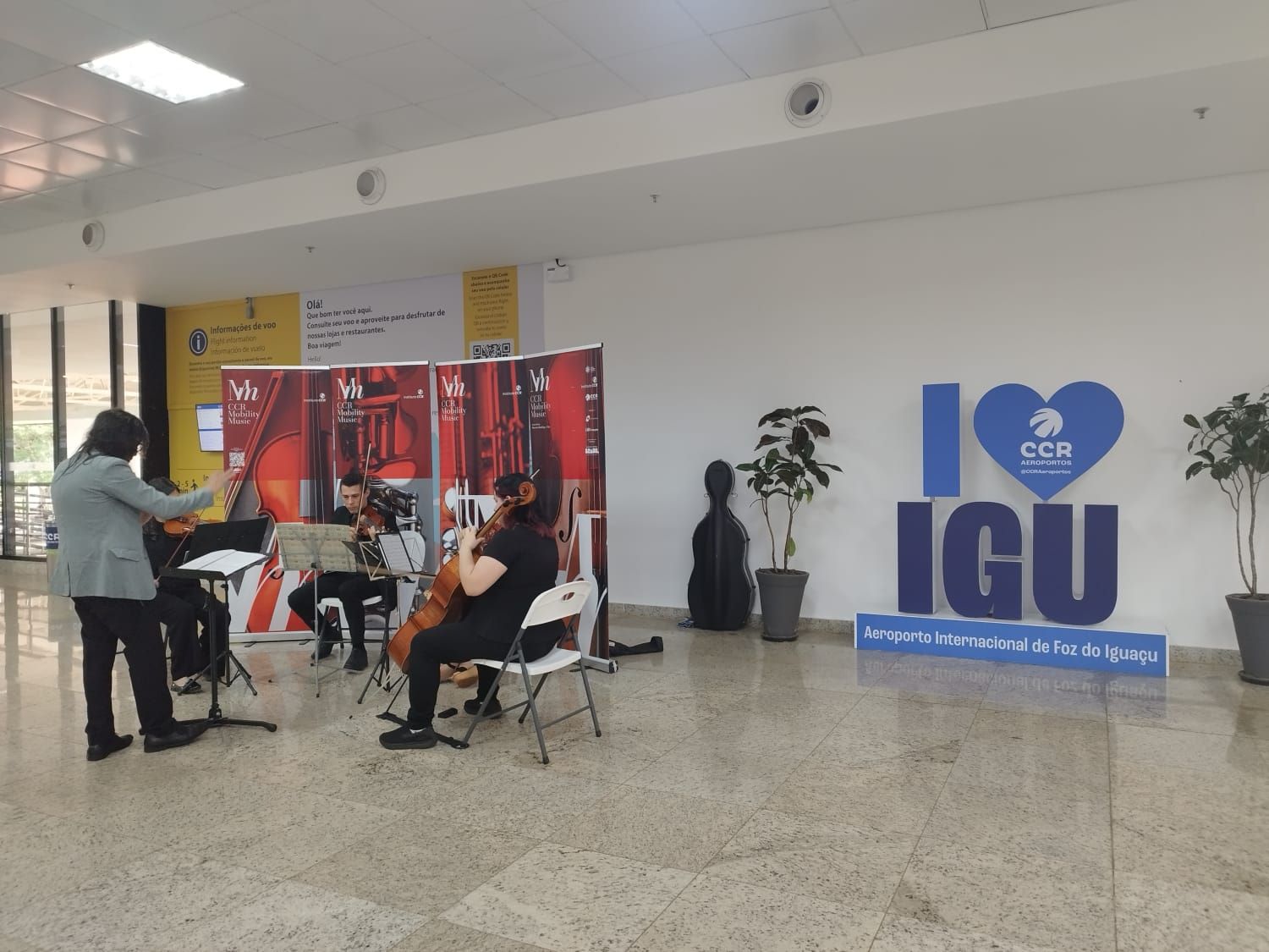 Apresentações no saguão do Aeroporto de Foz levam música clássica aos passageiros. Foto: Welyton Manoel/CCR Aeroportos