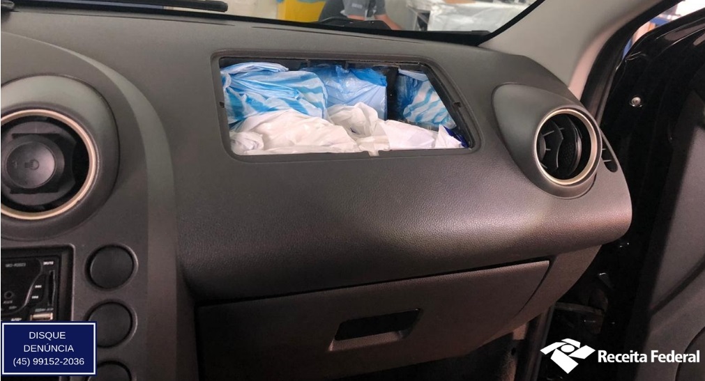 Airbag de veículo vira fundo falso para esconder perfumes. Vejam as fotos