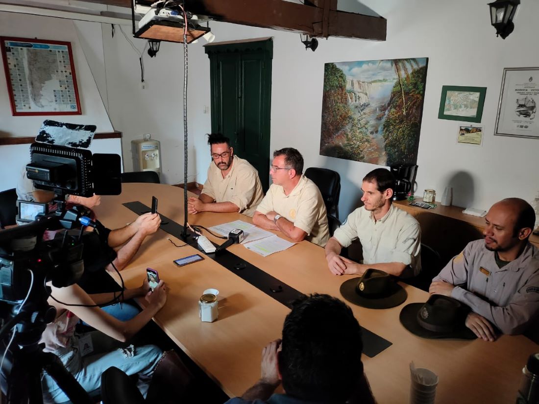 Coletiva de imprensa realizada no Parque Nacional do Iguaçu, do lado argentino, para anunciar o protesto: Foto: divulgação