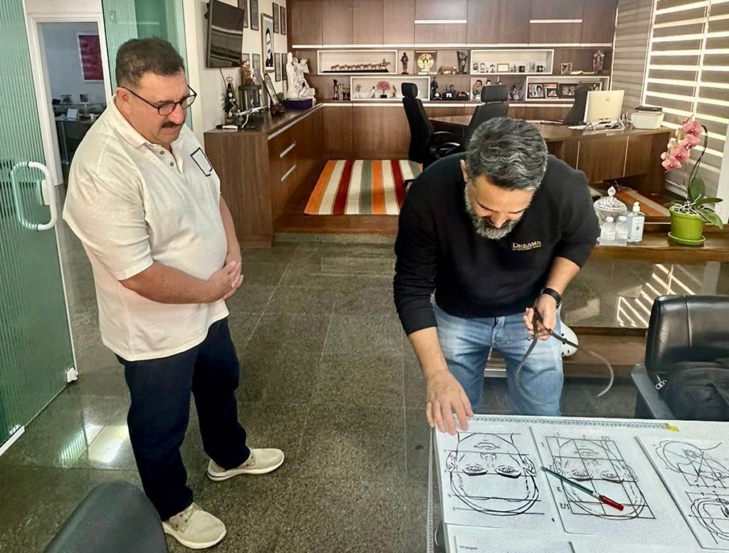 Para garantir fidelidade aos detalhes físicos do apresentador, a equipe de artesãos do Grupo Dreams esteve no escritório de Ratinho, em São Paulo.