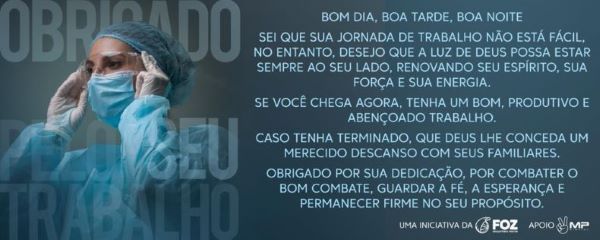 Os profissionais de Saúde dos Hospitais Costa Cavalcanti e Municipal estão se deparando, ao entrar e sair para trabalhar, com um outdoor de agradecimento e solidariedade, confeccionado a pedido da associação Foz Basquete Master.