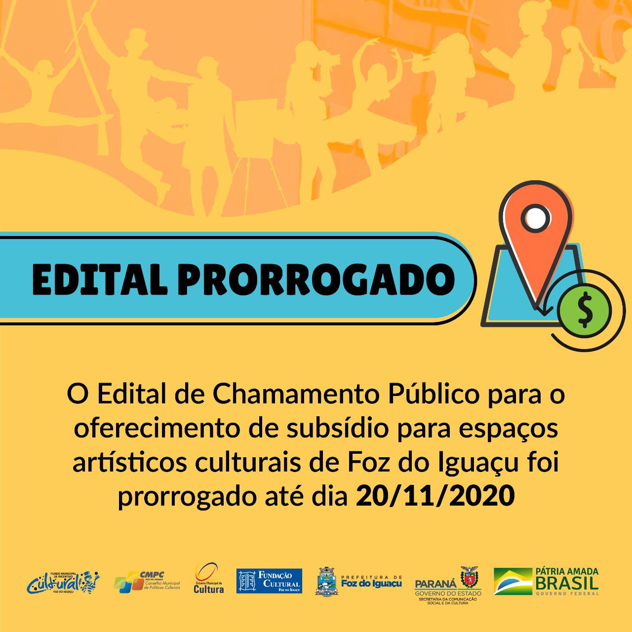 O edital de Chamamento Público para espaços artísticos e culturais de Foz do Iguaçu foi prorrogado.