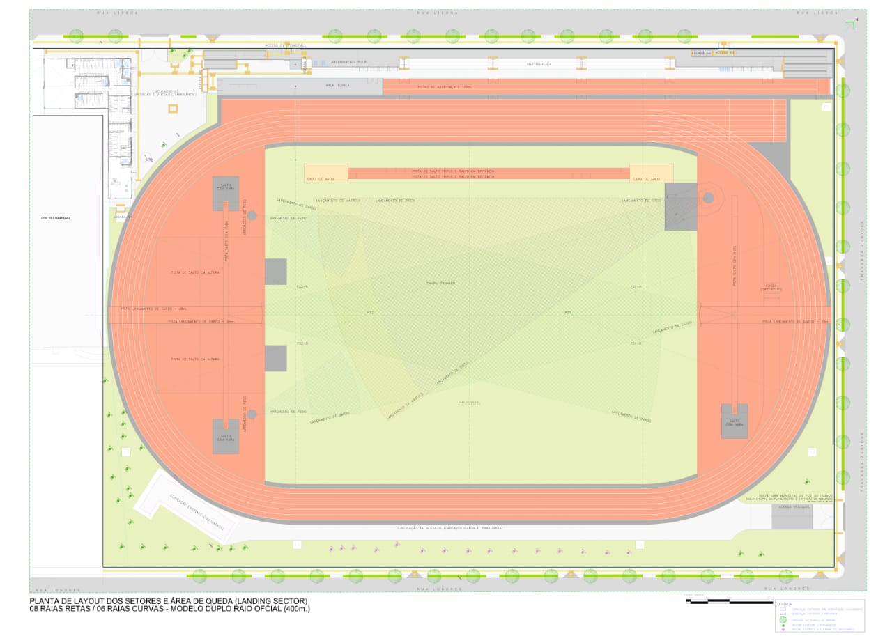 - a construção de pista de atletismo oficial duplo raio (06 raias e 08 retas);