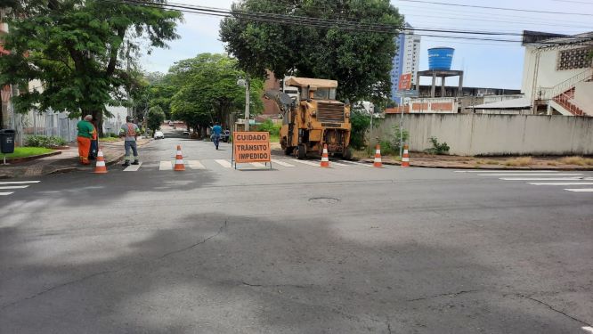 Os trabalhos fazem parte de um total de 30 mil m² de vias da região central que receberão recape asfáltico