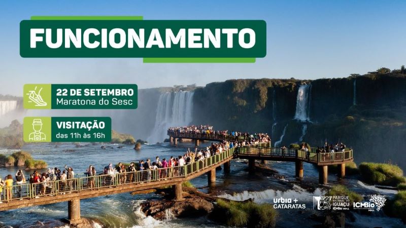 A tradicional Maratona Internacional de Foz do Iguaçu, marcada para o dia 22 de setembro, domingo, contará com a linha de chegada no Parque Nacional do Iguaçu. O trajeto da prova tem pontos estratégicos na cidade de Foz do Iguaçu, com início na Itaipu Binacional e encerramento no Parque Nacional do Iguaçu. Por conta dessa operação especial, o parque terá alteração no horário de visitação, exclusivamente neste dia 22 de setembro, abrindo para visitação das 11h às 16h.