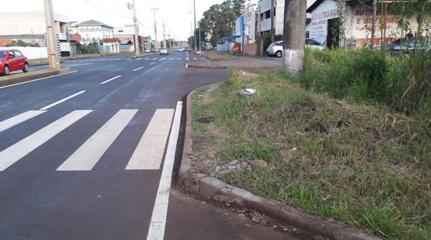 Insistimos, aqui, que há um trecho onde sequer há calçada e ciclovia, que é na frente da chamada “quadra de esportes Dragão”. O pedestre e o ciclista têm que driblar perigosamente os carros, pra percorrer o trecho.