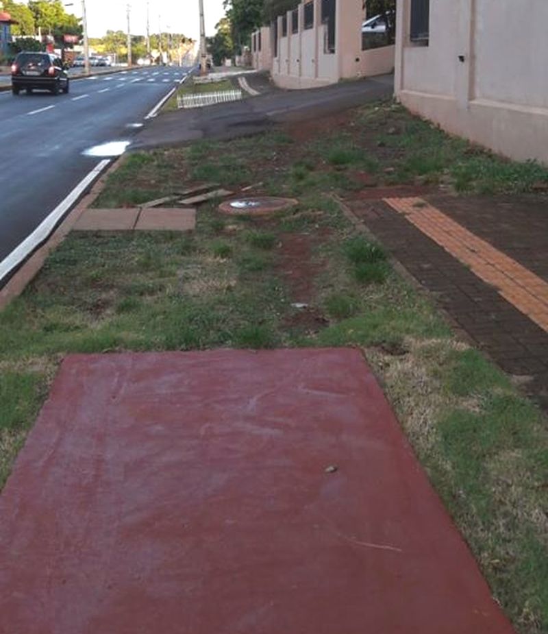 Tem ciclovia, tem calçadas, mas tudo já está se esboroando, pouquíssimo tempo após ficar “pronto”.