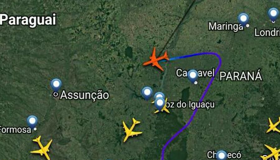 O avião da Air France que fez pouso forçado em Luque (perto de Assunção) estava ainda no Oeste do Paraná quando pediu autorização para descer no aeroporto Silvio Pettirossi.