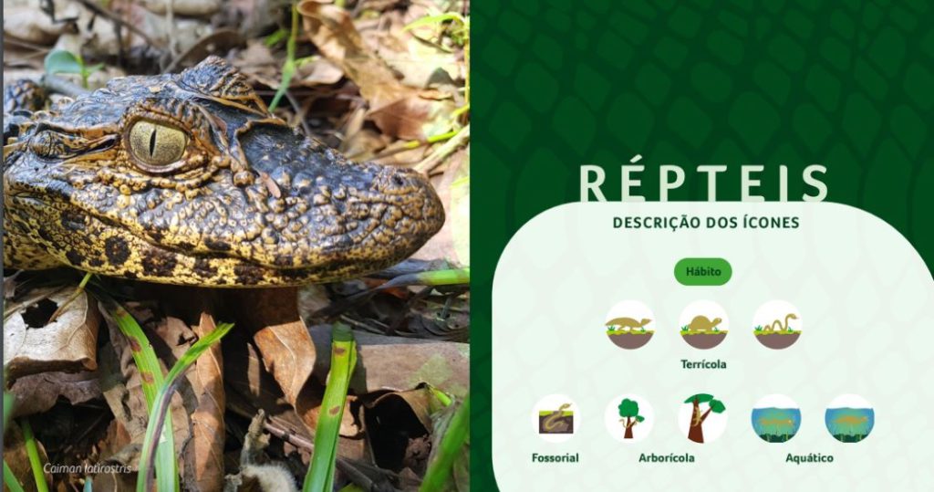 O material reúne de forma ilustrada e catalogada 39 espécies de répteis e anfíbios, como sapos, rãs, jacarés, cobras e lagartos, que foram identificados durante mais de dois anos de pesquisas.