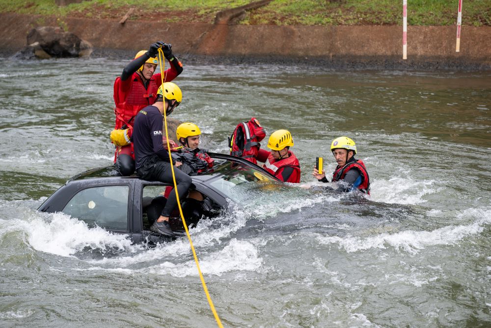 A ação teve como objetivo preparar os socorristas para ocorrências como enchentes e “cabeças d’água” em áreas urbanas e litorâneas do estado e foi feita em um trecho do Canal da Piracema (corredor ecológico de 10,3 km de extensão localizado nas dependências da usina de Itaipu), na pista de treinamento da canoagem slalom.