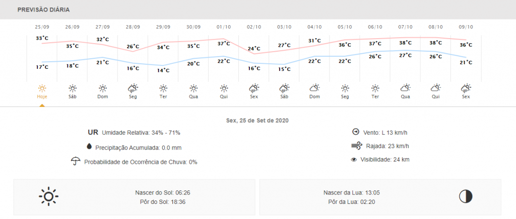 Chuva? Só na segunda-feira, e olhe lá! <img class="alignnone size-large wp-image-40239" src="https://www.naoviu.com.br/wp-content/uploads/2020/09/tempo-6-1024x436.png" alt="" width="1024" height="436" />