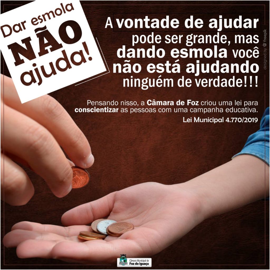 ? Pensando nisso, a Câmara de Foz, por meio da Vereadora Inês Weizemann, decidiu criar a Lei Municipal 4.770/2019 para conscientizar as pessoas com a campanha educativa “Dar esmolas não ajuda”.