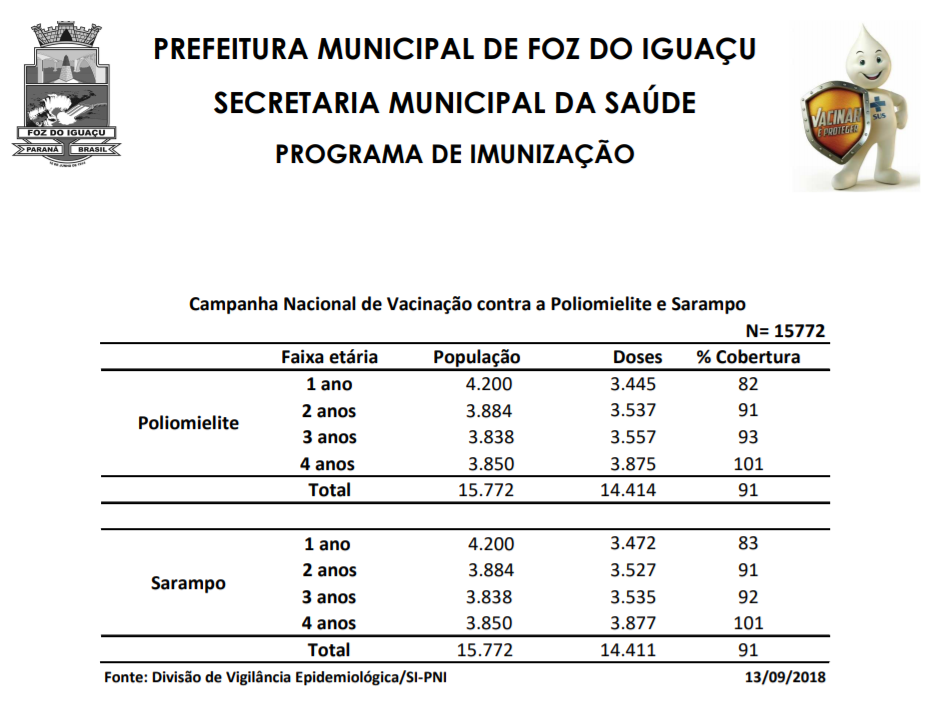 Foz do Iguaçu, a duras penas, conseguiu vacinar, até ontem (13%), 91% das crianças do município contra a paralisia infantil (poliomielite) e o sarampo.