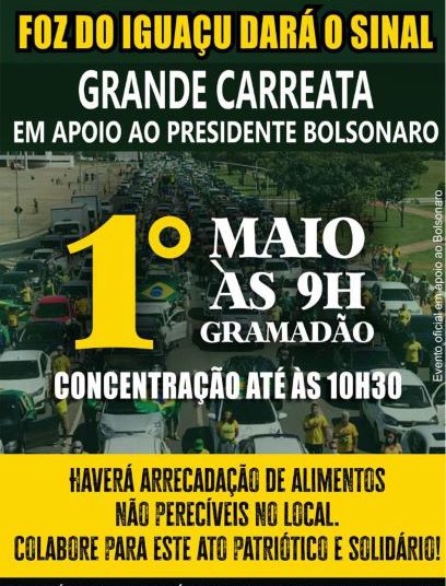 No próximo sábado, 1° de maio, admiradores do presidente Jair Bolsonaro promovem uma grande manifestação nacional para apoiá-lo, tendo em vista a situação política no Brasil.