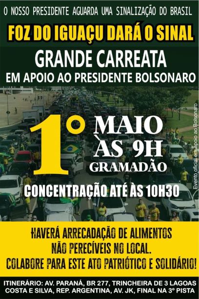 No próximo sábado, 1° de maio, admiradores do presidente Jair Bolsonaro promovem uma grande manifestação nacional para apoiá-lo, tendo em vista a situação política no Brasil.