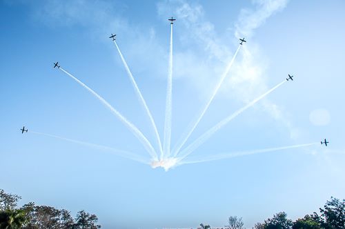 O sobrevoo da Esquadrilha da Fumaça nas Cataratas do Iguaçu, realizado ontem (03), fez parte das comemorações do aniversário de 150 anos do nascimento  de Santos Dumont, no Parque Nacional do Iguaçu.