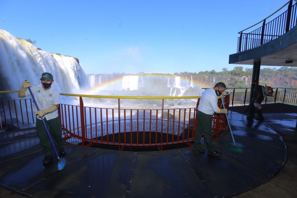 Diversas equipes trabalharam no sábado, 1 de agosto, na limpeza e organização de todo o circuito turístico do Parque Nacional do Iguaçut