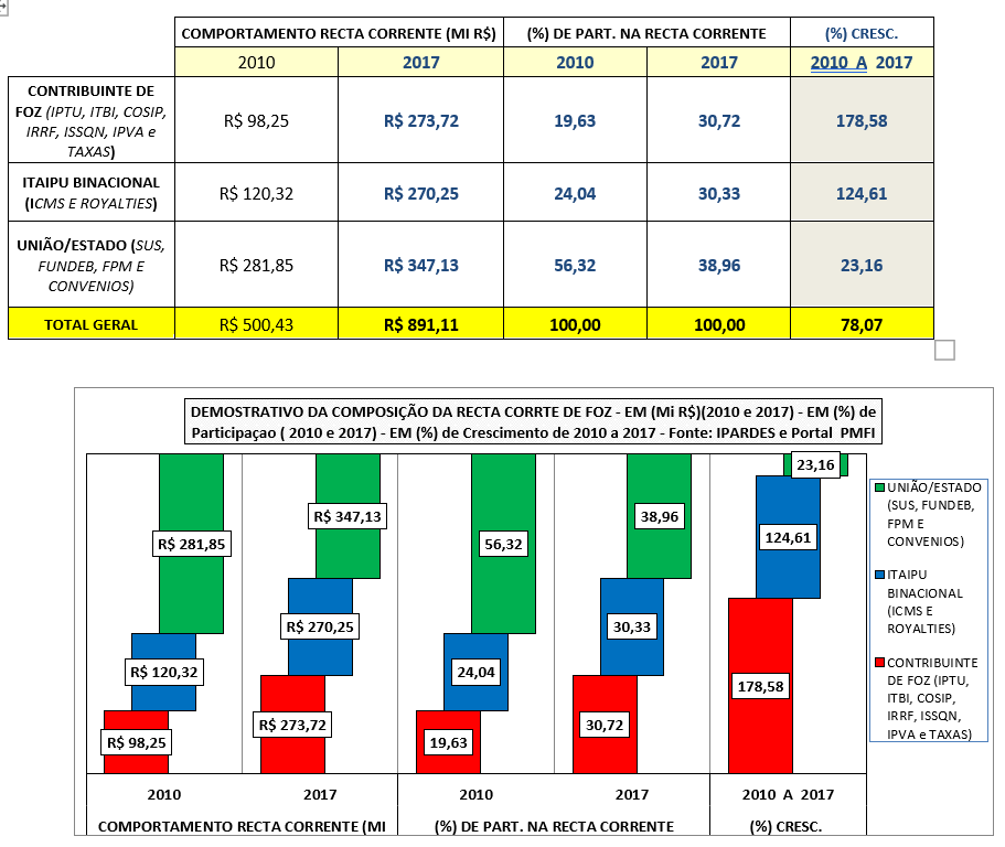 O estudo sobre o comportamento da formação da Receita Corrente da Prefeitura de Foz do Iguaçu evidencia o arrocho nos tributos pagos pelo contribuinte da cidade.