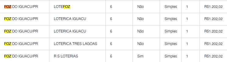 A quadra saiu para 5.101 apostas, entre elas cinco apostas feitas em lotéricas de Foz do Iguaçu, com prêmio de R$ 1.202,02 cada.