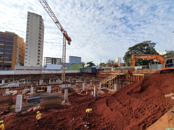 “Com a fundação pronta, partimos para a retirada de terra do último subsolo e já começamos a montar a laje do primeiro subsolo”, disse o engenheiro Carlos Alberto Demoliner, um dos responsáveis pela obra.