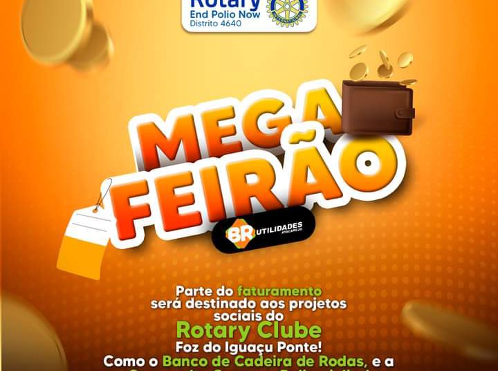 Durante os três dias de Mega Feirão, um percentual de 5% do valor das vendas será destinado para a campanha da Poliomielite e para o Banco de Empréstimo de Cadeira de Rodas do Rotary Club Foz do Iguaçu Ponte. Mais de 1000 produtos estarão em oferta, com descontos que chegam aos 50%.