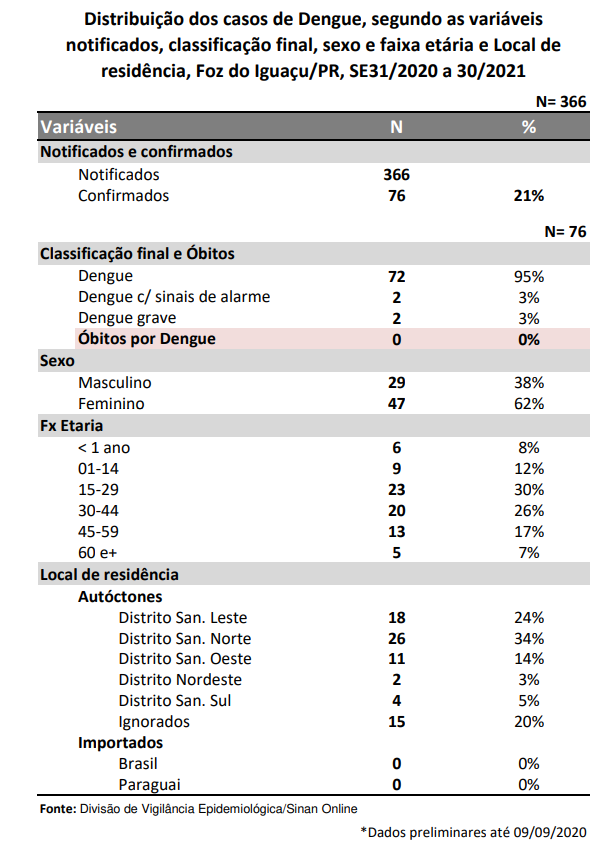 Desde o início de agosto até agora, Foz já registra 76 casos de dengue.