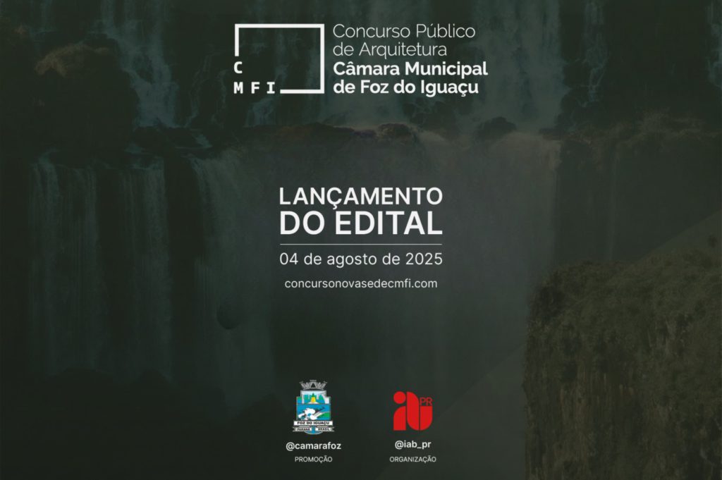A Câmara Municipal de Foz do Iguaçu (CMFI) realiza a modalidade de Concurso Público Nacional de Estudo Preliminar de Arquitetura para a contratação de projetos arquitetônicos, urbanísticos, paisagísticos e de engenharia para a Nova Sede do Poder Legislativo.