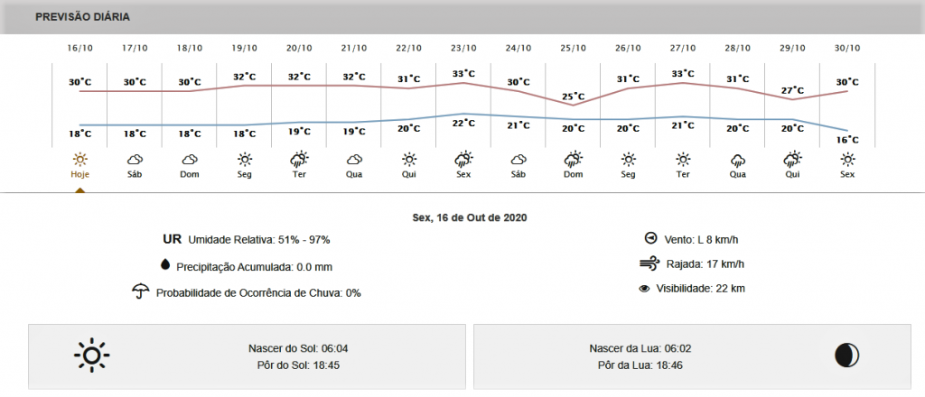 Confira a previsão do tempo na tabela abaixo feita pelo Simepar.