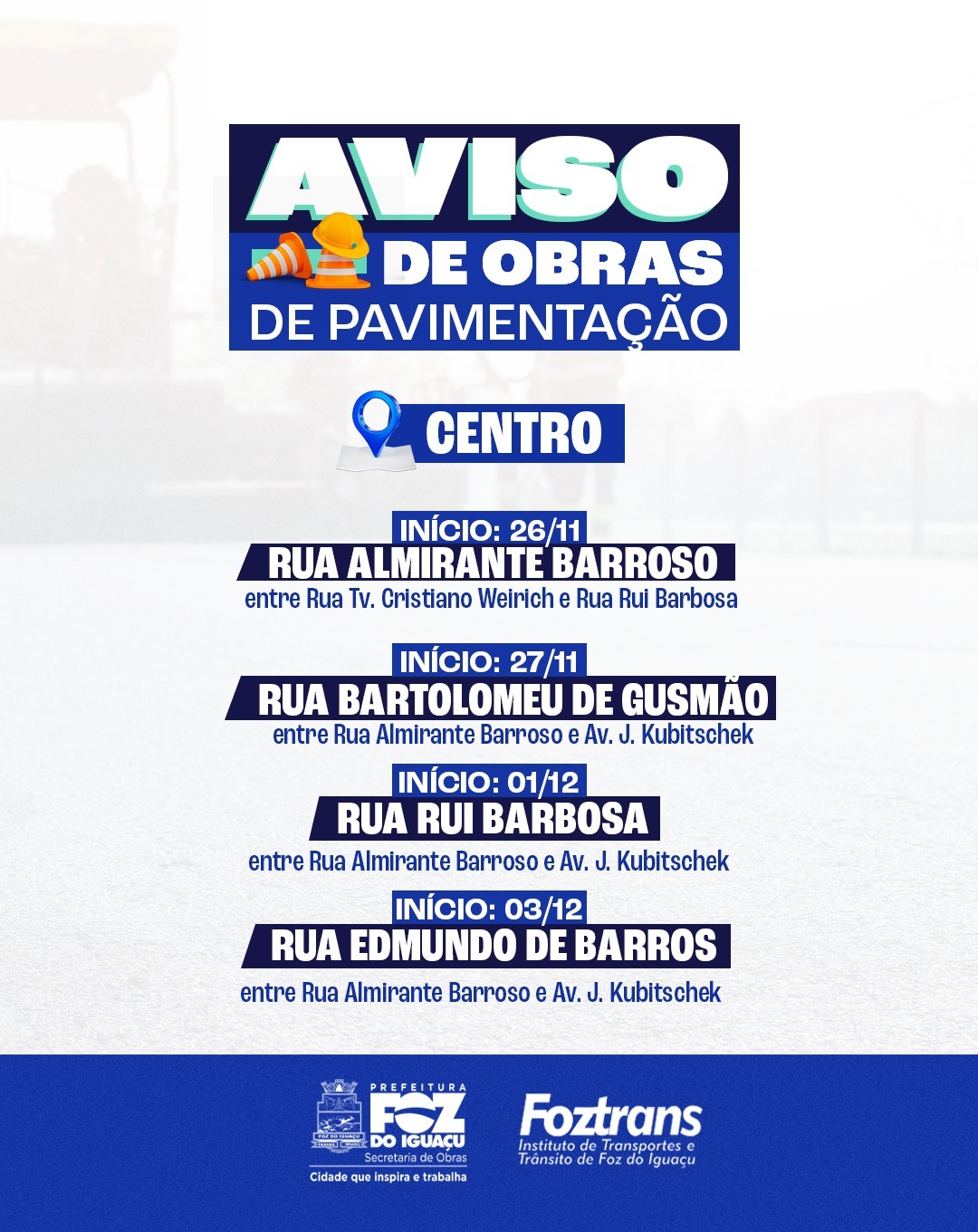 A Prefeitura de Foz do Iguaçu divulgou nesta quarta-feira, 26 de novembro, o cronograma de obras de pavimentação para resolver os problemas causados pelas esburacadas ruas do centro da cidade.