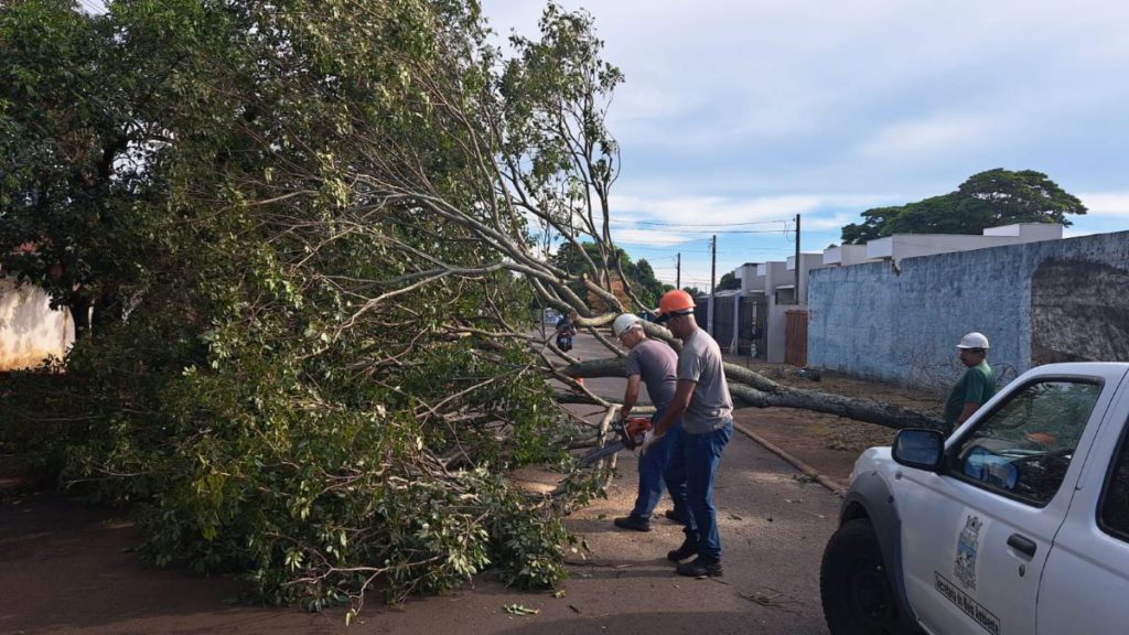 Também foram registradas várias ocorrências de quedas de árvores e galhos. Equipes da Secretaria de Meio Ambiente estão atuando para desobstruir as vias públicas.