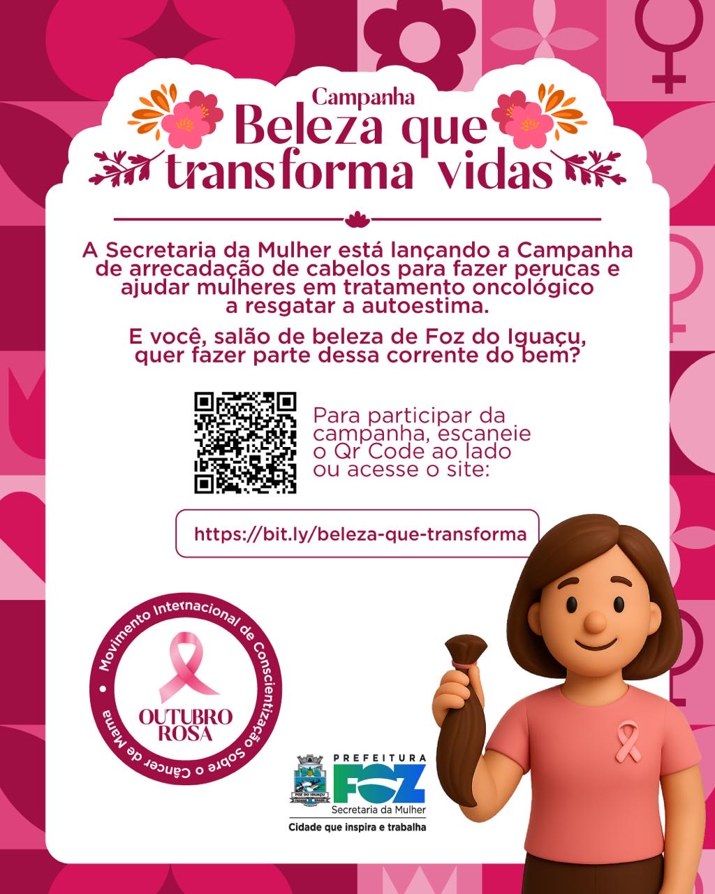 Oito salões de Foz do Iguaçu aderiram ao projeto “Beleza que transforma vidas” e estão fazendo a arrecadação de cabelos para a confecção de perucas que serão doadas a pacientes oncológicos.