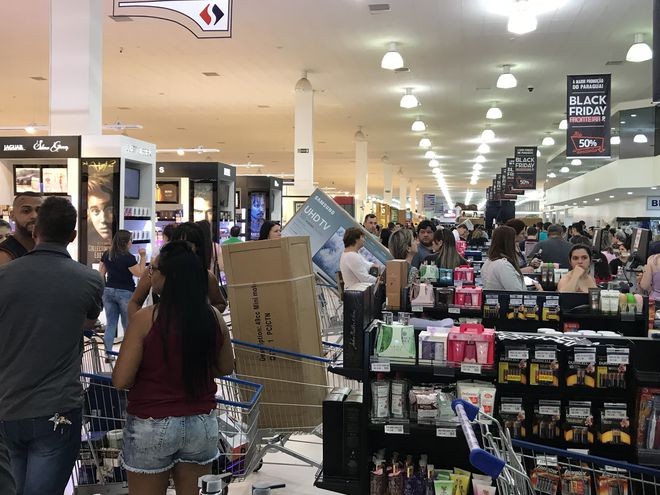 Os principais itens adquiridos foram: perfumaria, vestuário, alimentos e eletrodomésticos