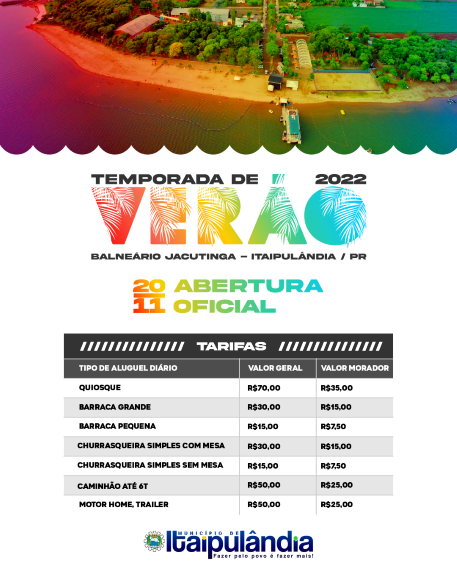 Enquanto a Prefeitura de Foz do Iguaçu patina e mantém a sua praia nas margens do Lago de Itaipu, a Prainha de Três Lagoas, fechada, a Prefeitura de Itaipulândia, preparada para a Temperada de Verão de 2022, abriu, desde o dia 20, o Balneário Jacutinga, “a prainha mais querida da região lindeira”.