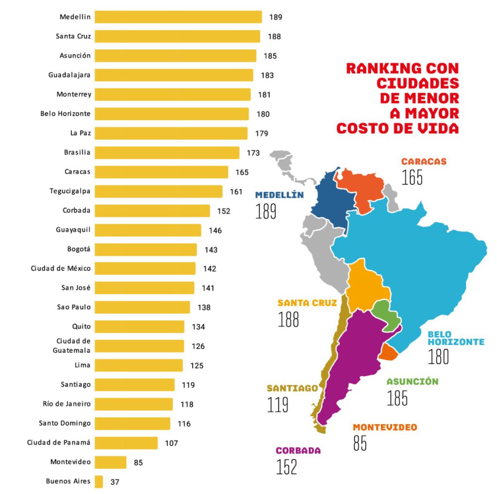 O ranking colocou Buenos Aires (Argentina), Montevidéu (Uruguai), Cidade do Panamá (Panamá), como as três cidades mais caras.
