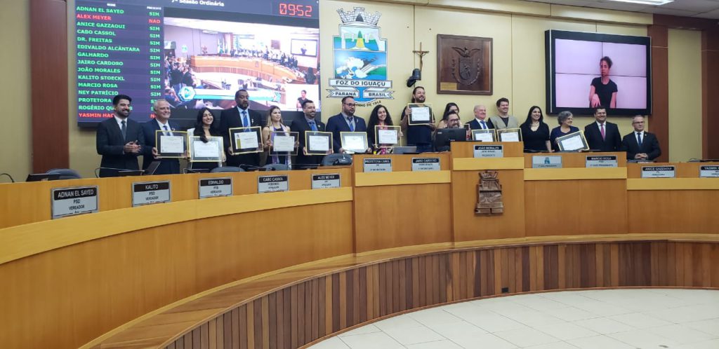 O Poder Legislativo entregou nesta segunda-feira, 04 de março, uma Moção de Aplauso (01/2024) dedicada aos clubes Rotary, Rotaracts e Interact Internacional de Foz do Iguaçu. A proposta é da vereadora Anice Gazzaoui (PL), em reconhecimento ao trabalho social desenvolvido pela organização. Os clubes desenvolvem trabalhos como ações de saúde e prevenção de doenças, compra de camas hospitalares, sopão, banco de cadeira de rodas infantil, banco de cama hospitalar e de muletas, dentre outras ações para famílias necessitadas.
