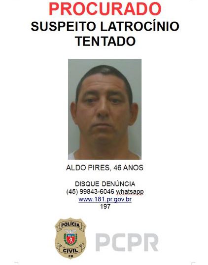 A Delegacia de Homicídios de Foz do Iguaçu divulgou, na manhã desta terça-feira (27), foto do foragido que atentou contra a vida de um Guarda Municipal no último dia 07 de julho, do corrente ano, no bairro Jardim Ipê, em Foz do Iguaçu.
