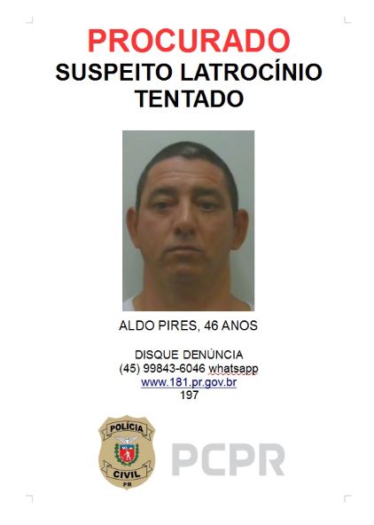 A Delegacia de Homicídios de Foz do Iguaçu divulgou, na manhã desta terça-feira (27), foto do foragido que atentou contra a vida de um Guarda Municipal no último dia 07 de julho, do corrente ano, no bairro Jardim Ipê, em Foz do Iguaçu.