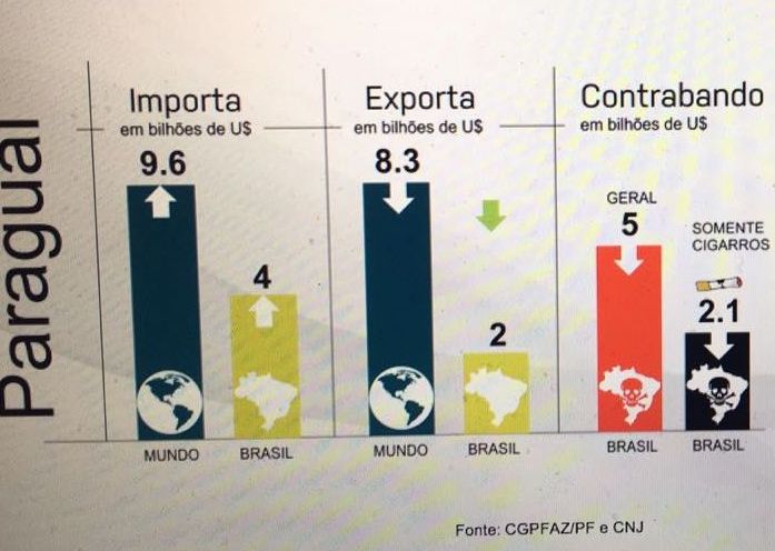 Em compensação, só o contrabando de cigarros para o Brasil atinge US$ 2,1 bilhões. A isso se soma o contrabando em geral, que rende outros US$ 5 bilhões.