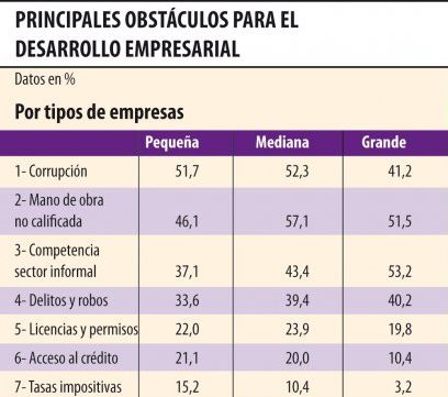 “Destaca-se o fato de que mais da metade das empresas pequenas e médias identifiquem a corrupção como um obstáculo sério para o desenvolvimento empresarial”, diz o informe, conforme matéria publicada no Ultima Hora.