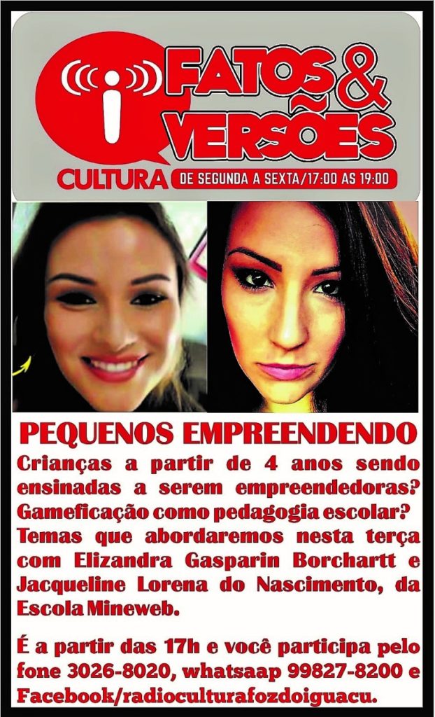 Se ligue, participe e confira. Canais de interatividade à disposição do ouvinte: fone 3026-8020, whatsaap 99827-8200 ou pelo facebook.com/radioculturafozdoiguacu