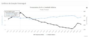 - Paranaguá: máxima de 29,4 graus de temperatura máxima, com sensação térmica de 29 graus, às 16 horas;